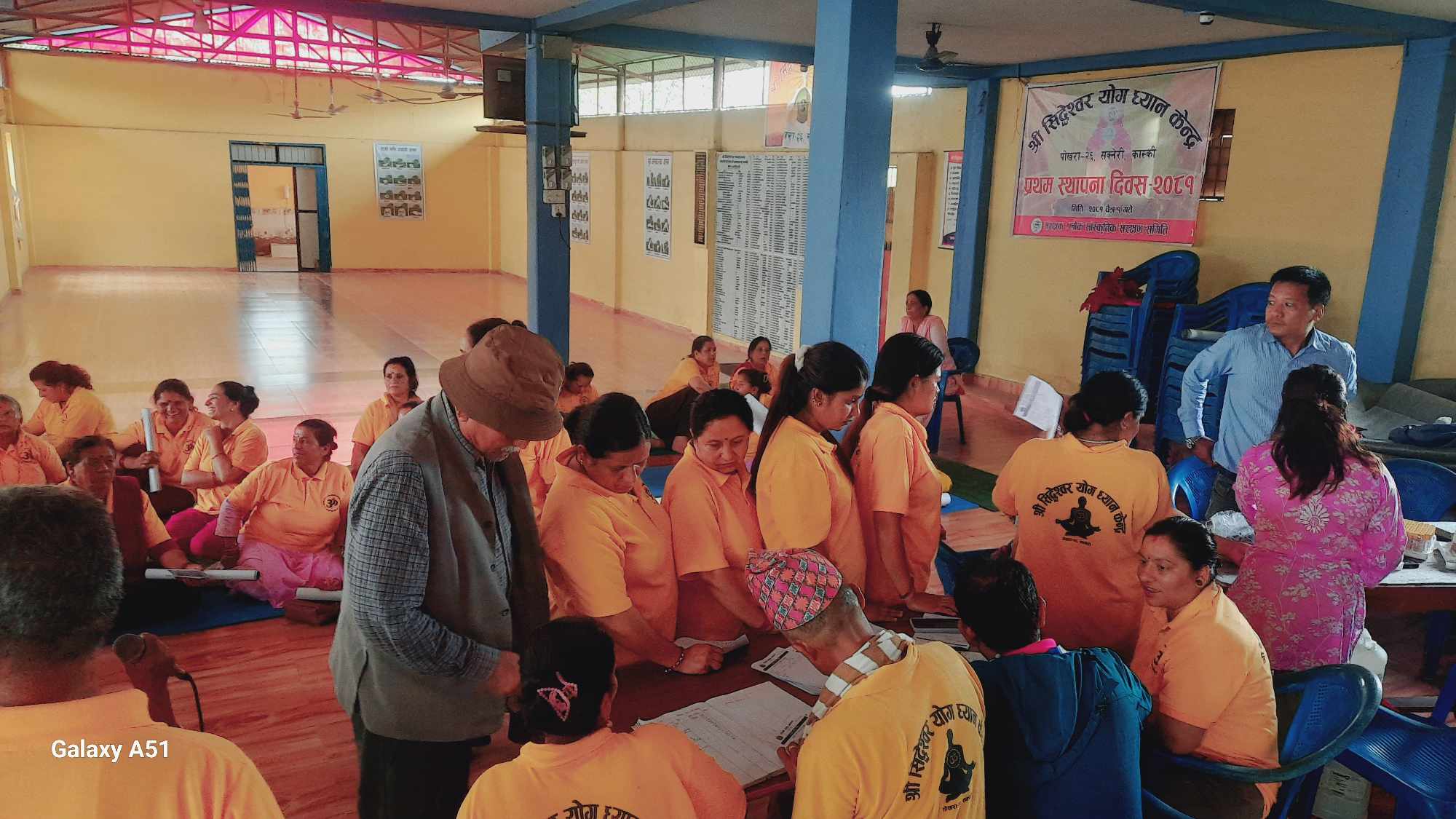 ११ औँ विश्व योग दिवसको अवसरमा पोखरा-२६, सक्नेरी स्थित श्री सिद्धेश्वर योग ध्यान केन्द्र, राम मन्दिरमा स्वस्थ जीवनशैली एवं भान्सा सुधार प्रशिक्षणको साथमा नि:शुल्क स्वास्थ्य परिक्षण तथा आयुर्वेद औषधि वितरण कार्यक्रम सम्पन्न भयो ।