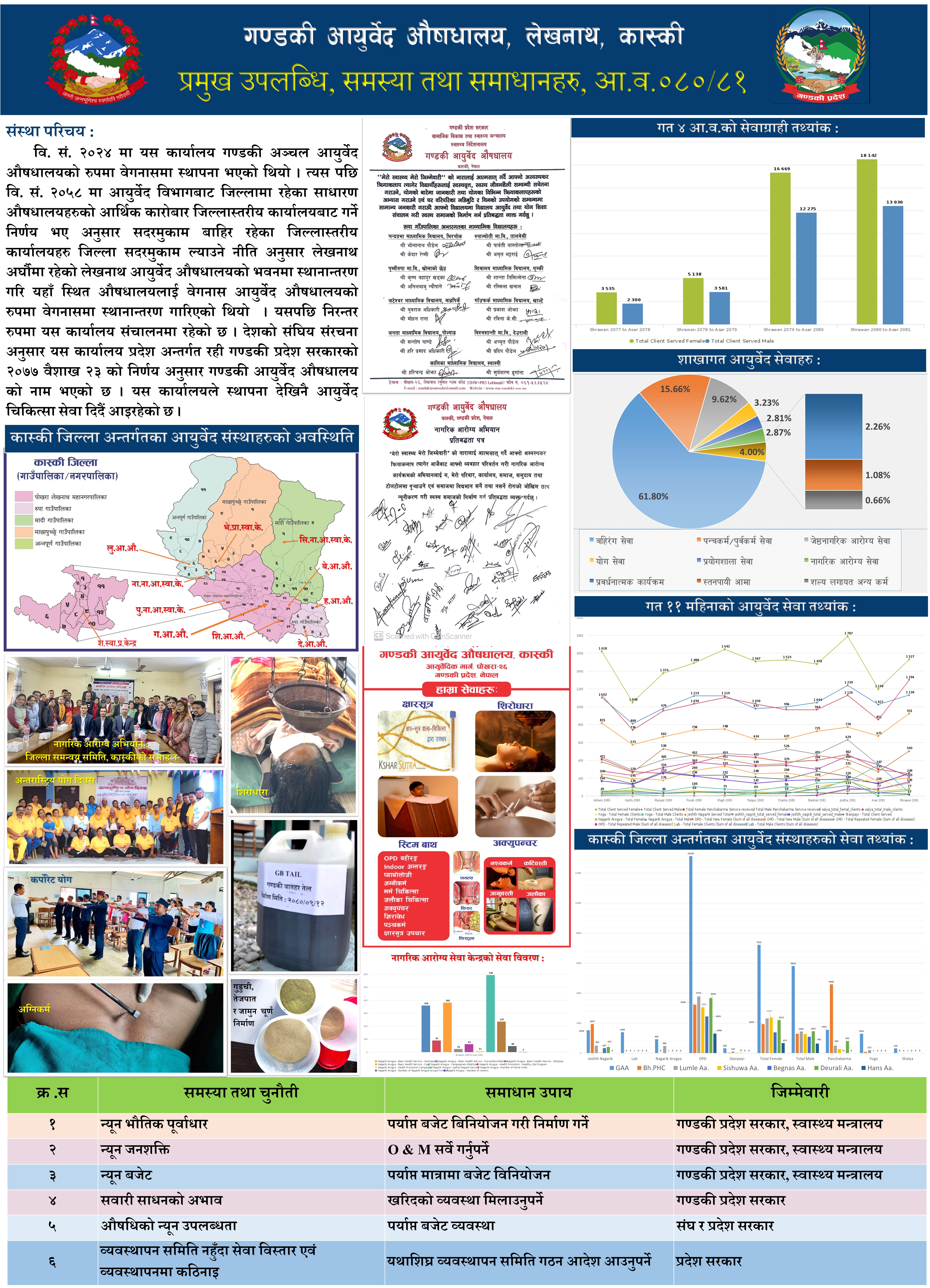 तेसै गरि आ. व. २०८०/८१ को वार्षिक समीक्षा कार्यक्रमको पोष्टर प्रर्दशनी प्रतिस्पर्धामा आयुर्वेद औषधालय/आयुर्वेद स्वास्थ्य केन्द्र तर्फ प्रथम स्थान प्राप्त गर्न सफल गण्डकी आयुर्वेद औषधालय, कास्कीको पोष्टर..