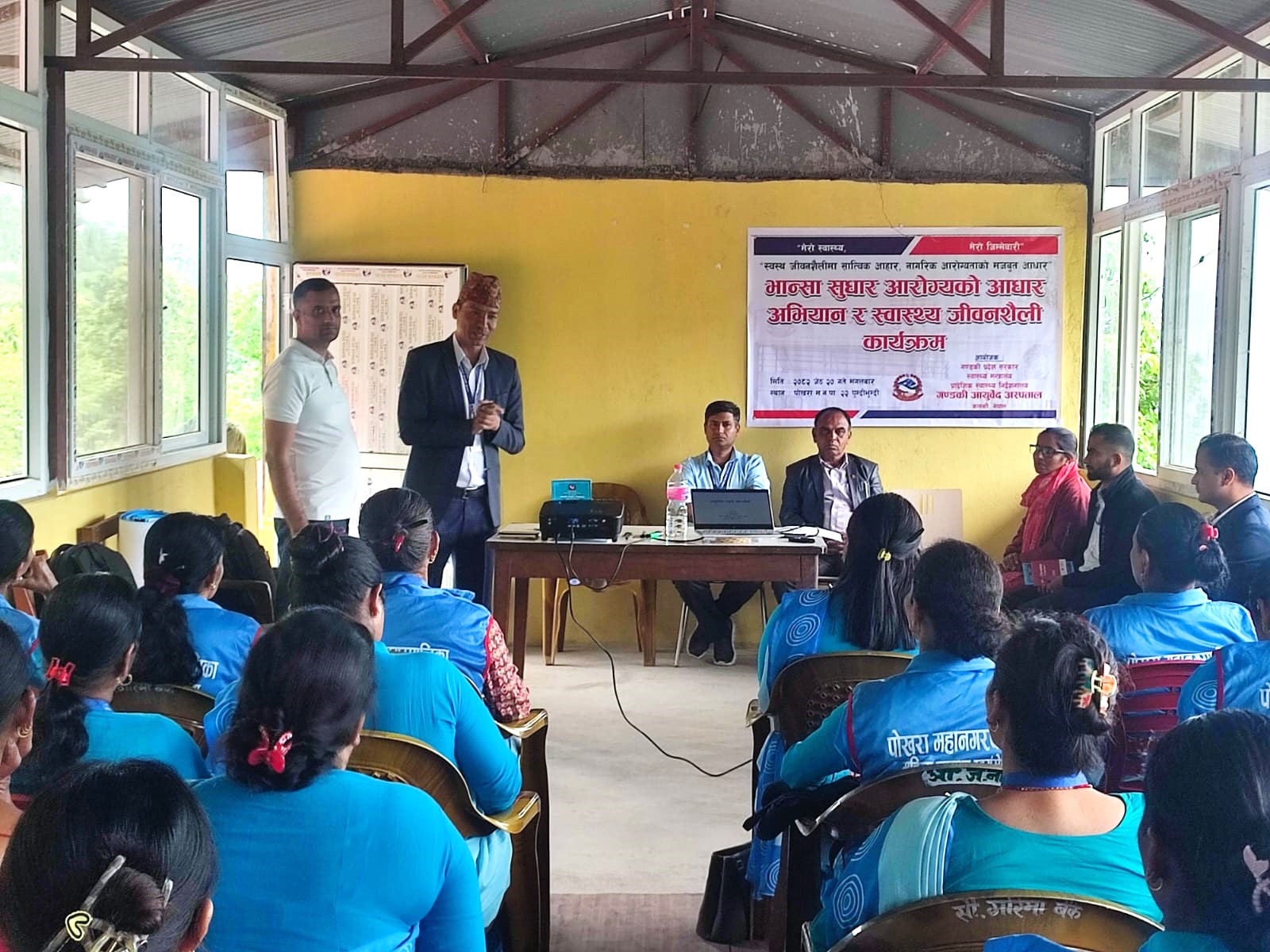 गण्डकी आयुर्वेद अस्पतालको आयोजना एवं नागरिक आरोग्य सेवा केन्द्र, पुम्दीभुम्दीको समन्वयमा भान्सा सुधार आरोग्यको आधार अभियान र स्वास्थ्य जीवनशैली कार्यक्रम पोखरा महानगरपालिका, २२ नं.वडा कार्यालयको सभाहलमा सम्पन्न भएको छ ।