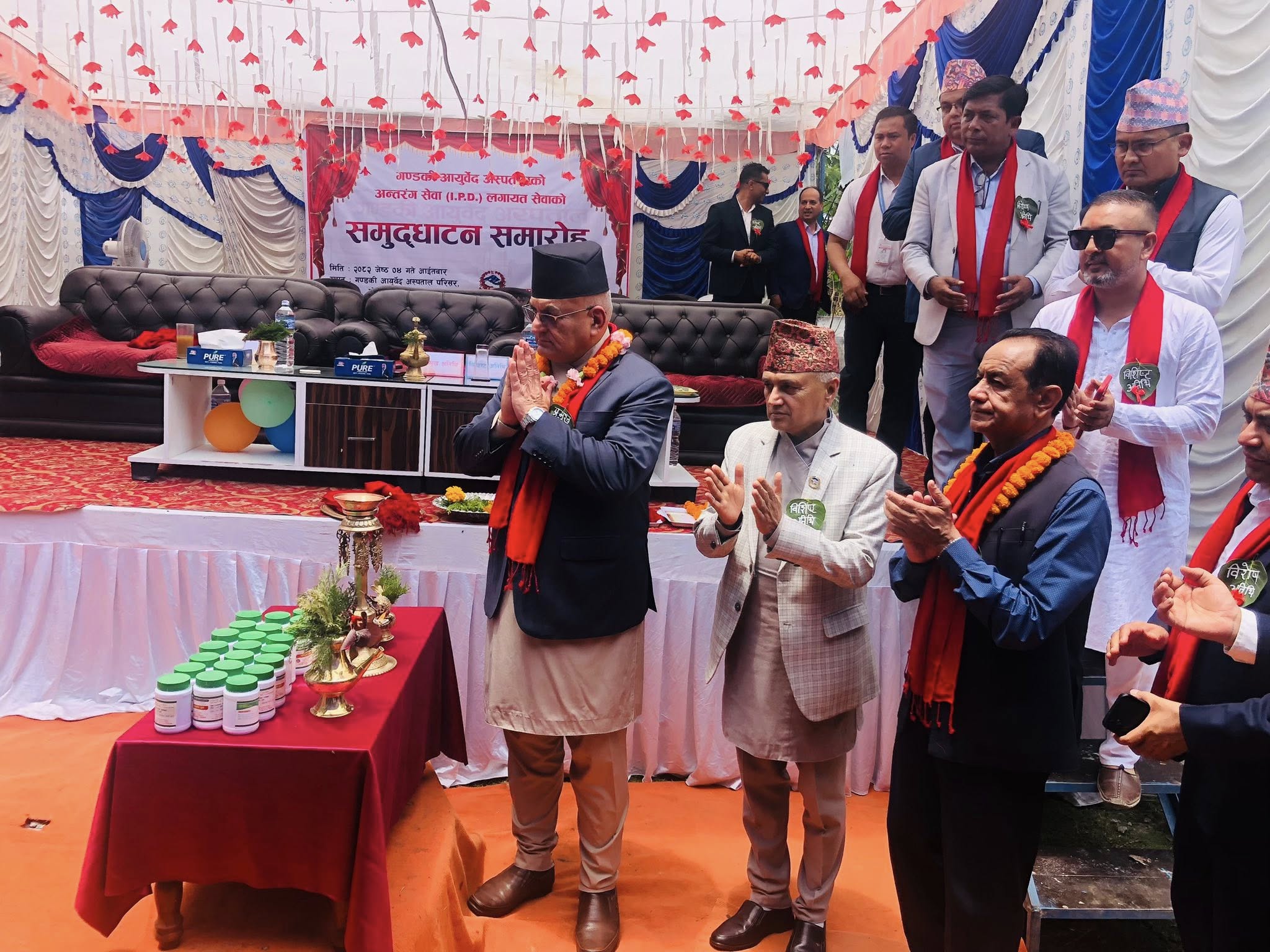 मिति २०८२/०२/०४ गते आईतबार प्रमुख अतिथि माननीय मुख्य मन्त्री सुरेन्द्रराज पाण्डे एवं विशिष्ट अतिथि माननीय पुर्ब मुख्यमन्त्री खगराज अधिकारी र माननीय स्वास्थ्य मन्त्री कृष्ण पाठ्क ज्युको समुपस्थितिमा गण्डकी आयुर्बेद अस्पतालको अन्तरंग लगाएत सेवाहरुको बिधिबत रुपमा उदघाटन भएको छ । सो कार्यक्रममा विशेष अतिथिका रुपमा गण्डकी प्रदेश सरकारका स्वास्थ सचिव श्रीमान् विश्वबन्धु बगाले, कास्की जिल्ला प्रमुख जिल्ला अधिकारी श्रीमान् भरतमणि पाण्डे, प्रादेशिक स्वास्थ्य निर्देशनालयका महानिर्देशक श्रीमान् खिम बहादुर खड्का, प्रादेशिक स्वास्थ्य आपूर्ति व्यवस्थापन केन्द्र, महानिर्देशक डा.रेखा पौडेल, पोखरा महानगर पालिका वडा नं.२६ वडाध्यक्ष श्री नरेन्द्र थापा, प्रादेशिक स्वास्थ्य तालिम केन्द्रका श्री हेमन्त शर्मा पौडेल, प्रादेशिक जनरल तथा सरुवा रोग अस्पताल, निर्देशक डा.विकाश गौचन, प्रादेशिक जनस्वास्थ्य प्रयोगशाला प्रमुख रहनु भएको कार्यक्रममा अतिथिको रुपमा पोखरा महानगरपालिका वडा नं.२७, २८, २९, ३०, ३१, ३२, ३३ वडाध्यक्ष ज्यूहरु, आयुर्वेद तथा वैकल्पिक चिकित्सा विभागका शाखा प्रमुख डा.वंशदिप शर्मा खरेल, मुख्यमन्त्री, पूर्व मुख्यमन्त्री, स्वास्थ्य मन्त्रि ज्युका सचिवालय पदाधिकारीहरु, प्रादेशिक क्षयरोग नियन्त्रण केन्द्र निर्देशक, स्वास्थ्य मन्त्रालय महाशाखा प्रमुखहरु, मध्यविन्दु प्रादेशिक अस्पताल व्यवस्थापन समिति अध्यक्ष एवं मे.सू., जिल्ला स्थित अस्पताल, स्वास्थ्य कार्यालय प्रमुख, प्रादेशिक आयुर्वेद चिकित्सालय प्रमुख ज्यूहरु, वडा नं.२६ र २७ का क्याम्पस प्रमुख तथा विद्यालयका प्रधानाध्यापक ज्यूहरु, रा.स.स. अध्यक्ष लगाएत ;लेखनाथ पत्रकार मंचका पत्रकार ज्यूहरु, तत्कालिन गण्डकी आयुर्वेद औषधालय व्यवस्थापन समिति सदस्य श्री कुलदीप बराल, आयुर्वेद चिकित्सकहरु, नेपाल आयुर्वेद औषधि व्यवसायी संघ गण्डकी प्रदेश एवं कास्की जिल्ला अध्यक्ष एवं सदस्य ज्यूहरु, राष्ट्रिय आयुर्वेद एसोसियसन नेपाल गण्डकी प्रदेश एवं कास्की जिल्ला अध्यक्ष, सुरक्षाकर्मी, टोल विकास संस्थाका अध्यक्ष, सदस्य, स्थानीय समाजसेवी, नागरिक समाजका प्रतिनिधिहरु, आमा समुहका अध्यक्ष एवं सदस्यहरु, युवा क्लबका अध्यक्ष एवं सदस्यहरु अतिथि रहेको कार्यक्रममा यसै आ.व. मा सेवा निवृत हुनुभएका श्री बाबुराम भण्डारीलाई कदरपत्र प्रदान गरिएको थियो भने श्री सीता शर्मा, श्री कविता अधिकारी, श्री गोविन्द आचार्यलाई प्रशंसापत्र प्रदान गरिएको थियो