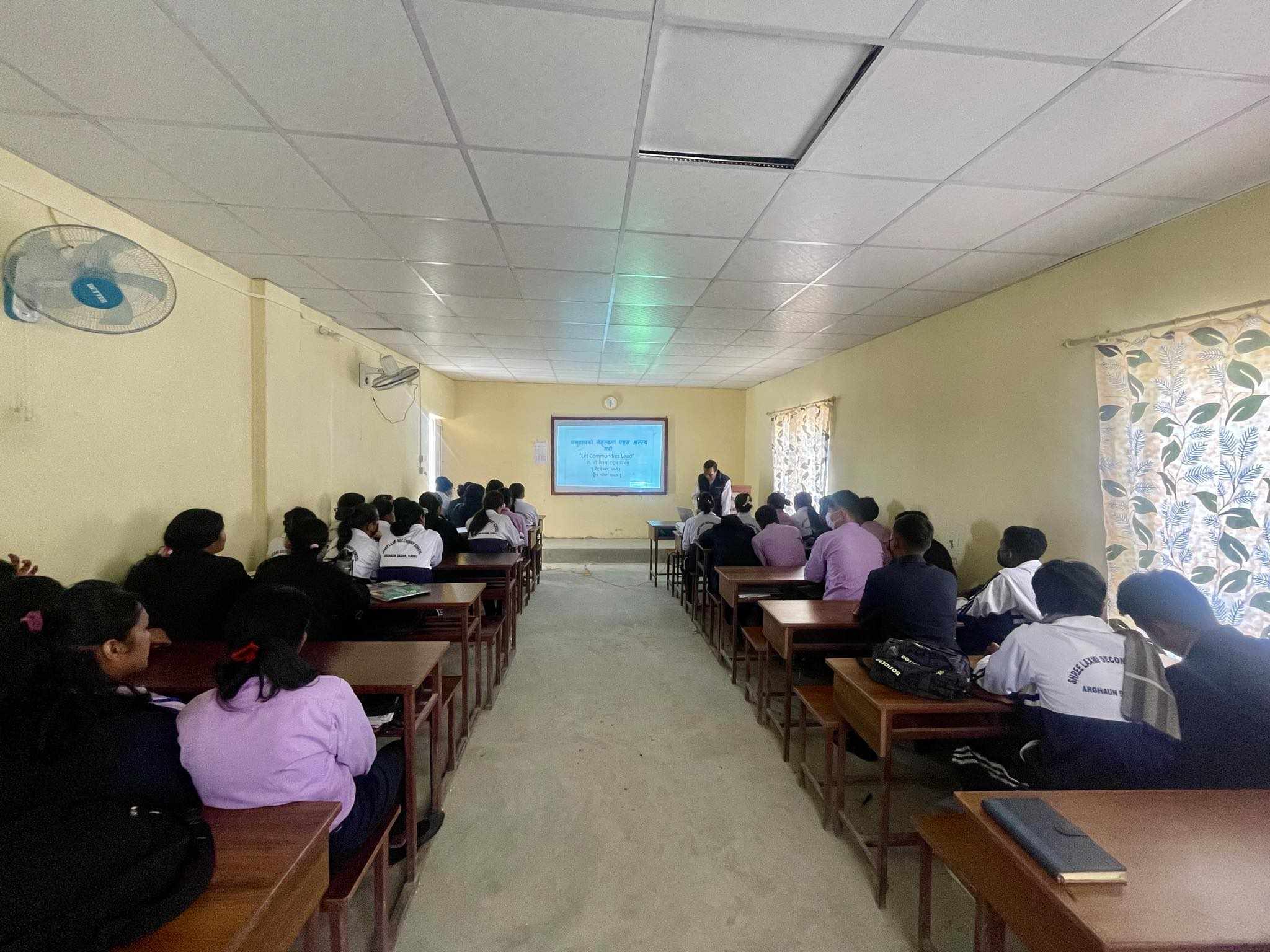 ३६ औं विश्व एड्स दिवसको अवसरमा मिति २०८० मंसिर १५ गते शुक्रबारको दिन श्री लक्ष्मी मा. वि. अर्घौ पोखरा २६ का कक्षा ११ का विद्यार्थीहरुलाई एच आई भि एवं एड्स सम्बन्धी अभिमुखिकारण कार्यक्रम संचालन गरियो ।