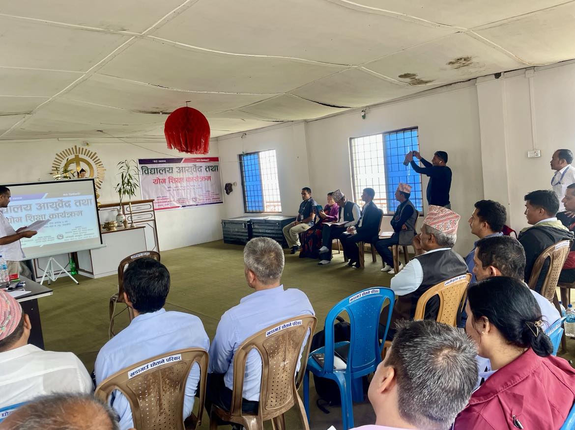 मिति २०८१/०२/३२ देखि २०८१/०३/०२ सम्म रुपा गाउँपालिका वडा नं.०५, खडागाउँमा संचालित कार्यक्रमको उदघाटन सत्रका प्रमुख अतिथि रुपा गाउँपालिका अध्यक्ष श्री नवराज ओझाले सहभागी विद्यालयमा आयुर्वेद तथा वैकल्पिक चिकित्सा विभागले तयार गरेको विद्यालय आयुर्वेद तथा योग शिक्षा पुस्तक अनुसार आयुर्वेद कक्षा संचालन गर्ने निर्देशन दिदै स्थानीय पालिकाले तयार गर्दै गरेको ६ कक्षा भन्दा माथिको पाठ्यक्रममा अनिवार्य आयुर्वेदको विषय राखिने बताउनु भयो ।